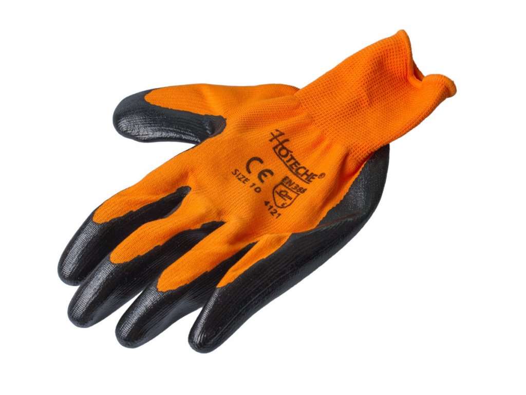 Ochranné pracovní rukavice značky Hoteche vyrobené z polyesteru a nitrilu.