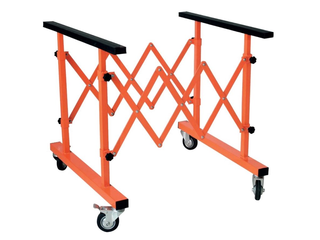 Pojízdný roztahovací pracovní stojan – kombinovaný podstavec a vozík, nosnost 100 kg, plynule nastavitelná výška a šířka, ocelový – Kunzer 7TMT01Univerzální nastavitelný stůl pro opravy větších autodílů, jako jsou části karosérie, čelní skla apod. Díky měnitelné výšce a šířce lze nástroj přesně přizpůsobit rozměrům konkrétního předmětu, maximální nosnost 100 kg umožňuje naložení i těžších věcí.