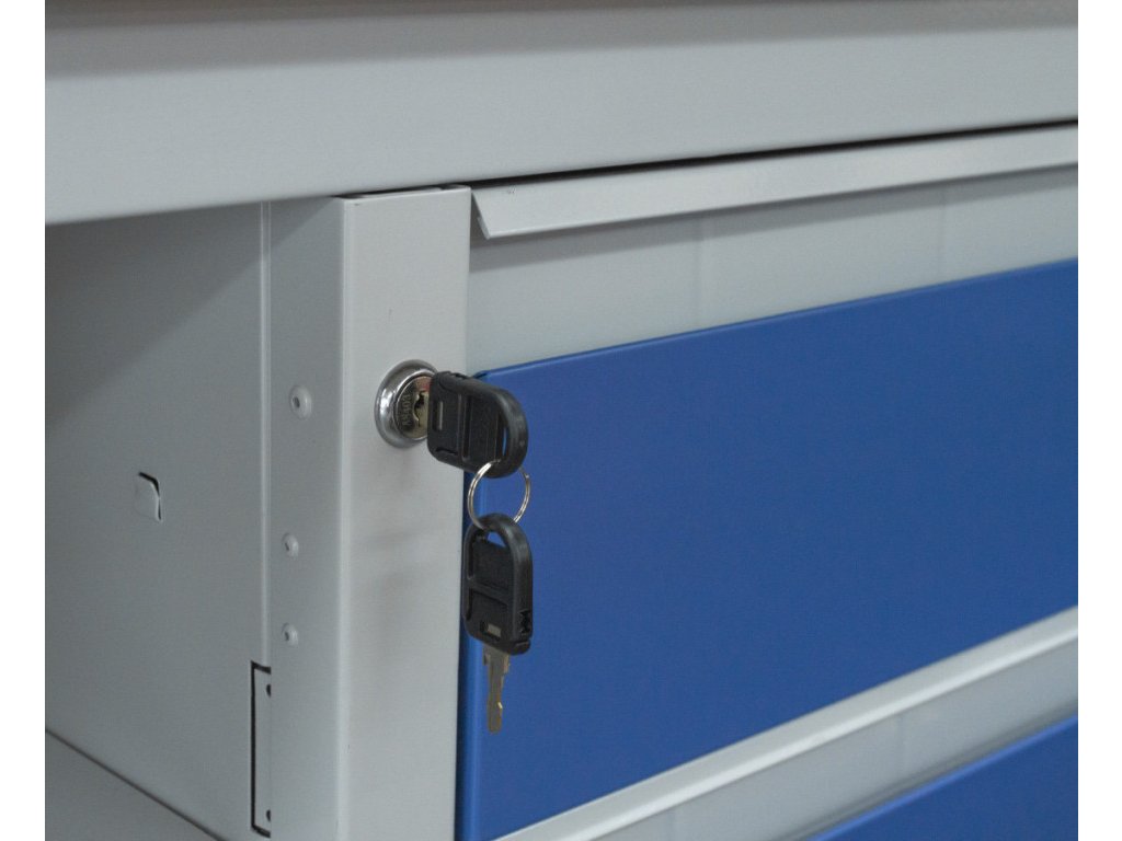 - Uzamykatelná skříňka a zásuvky se společným zámkem a 4 stejnými klíči.
