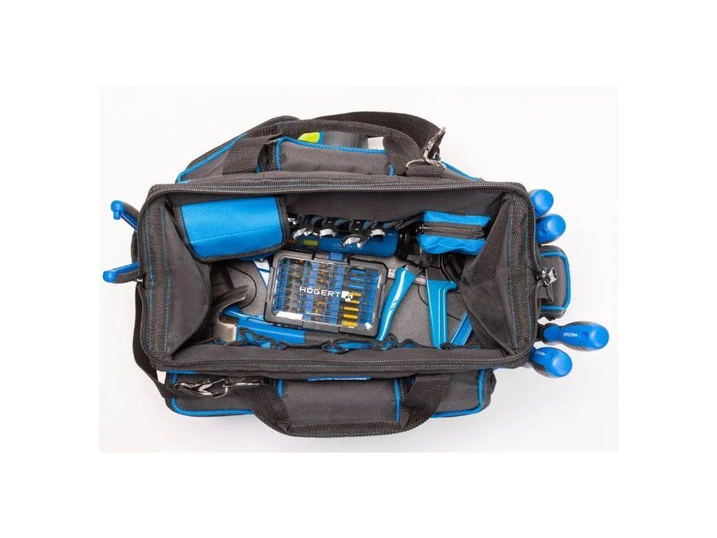 Pracovní taška II HOGERT HT7G206 Pracovní brašna, která v sobě spojuje odolnost i funkčnost a stává se nepostradatelnou volbou pro profesionály.Je vyrobena z nejkvalitnějšího polyesteru 600D, který zajišťuje trvanlivost a odolnostvůči různým druhům