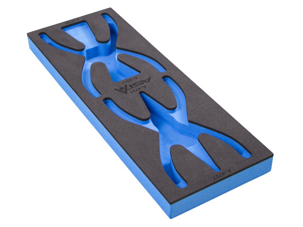 Prázdná pěnová vložka pro kleště. Vložka najde využití při organizaci vašeho nářadí v dílenských vozících nebo pracovních stolech.