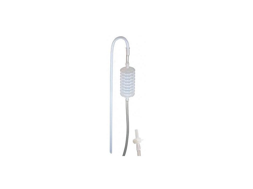 Přečerpávač na víno, medovinu a jiné tekutiny s pumpičkou s velkým uzavíratelným ventilem.