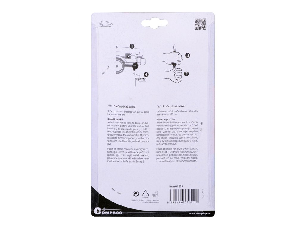 Přečerpávač má snadné použití - jeden konec hadice ponořte do přečerpávané kapaliny, prstem utěsněte druhou část hadice a 3 - 5x zapumpujte gumovým balónkem. Uvolněte prst a nechte kapalinu samospádem vytékat do cílové nádoby. Aby mohla kapalina téct samospádem, musí být cílová nádoba umístěna níže, než nádoba zdrojová.