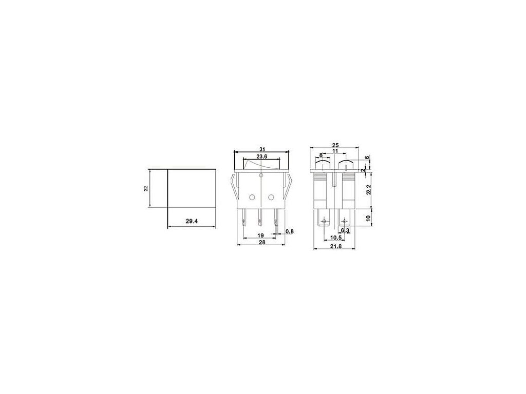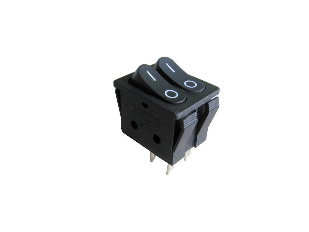 Přepínač kolébkový RS-2101-3C, 2xON-OFF 2x1pol.250V/15A černý