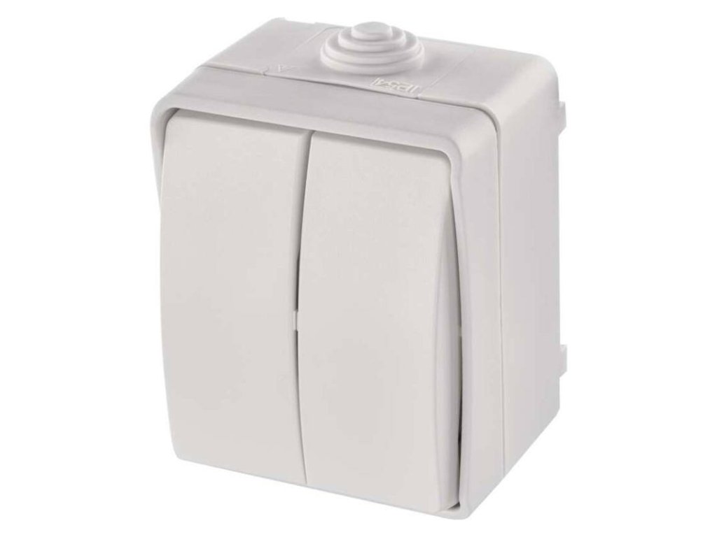Přepínač nástěnný IP54, dvoutlačítkový, bílý