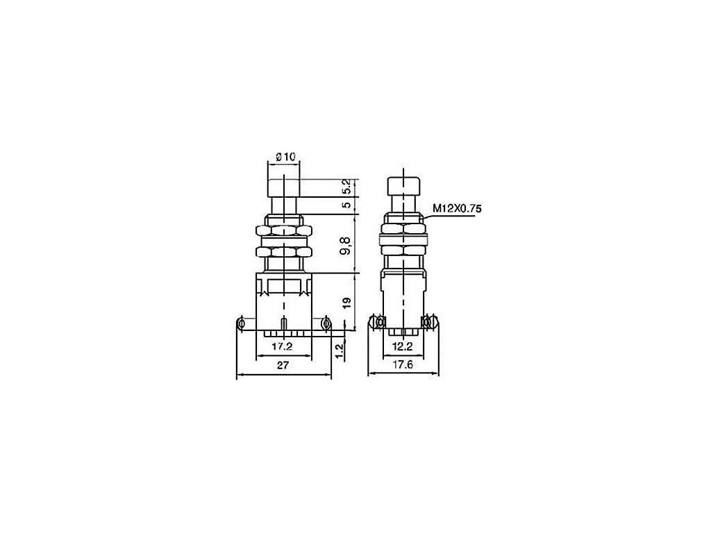 Přepínač stiskací PBS-24-202, ON-ON 2pol.250V/2A otvor pr.12mmSpecifikace k produktu je ke stažení zde