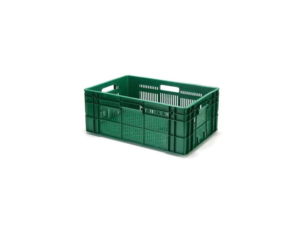 Zesílená přepravka vhodná na ovoce a zeleninu, průhmaty na všech stranách.