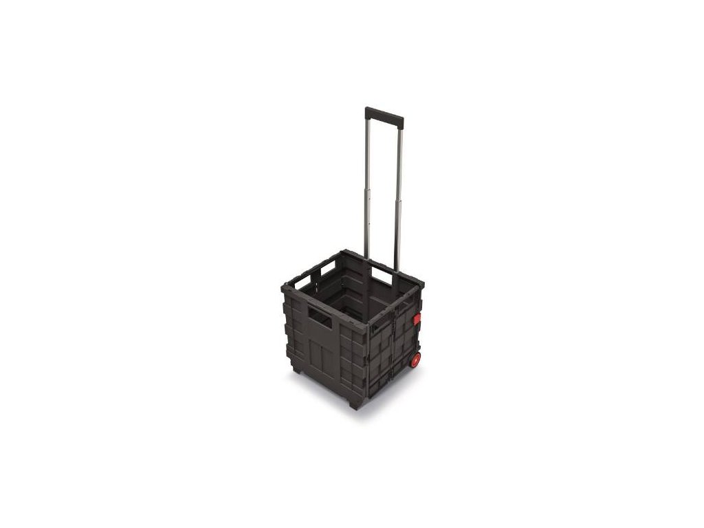 Skládací přepravku lze využívat také jako mobilní kufřík. Jednoduchá manipulace pomocí výsuvní ergonomické rukojeti z hliníku. Pohyb zajišťují dvě odolná kolečka s elastomerovým potahem. - Technické údaje: