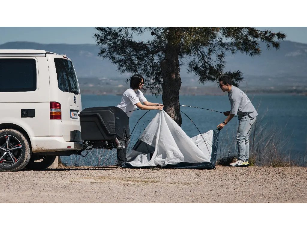 Hmotnost a manipulace S hmotností pouhých 30 kg patří TowBox mezi nejlehčí ve své kategorii a nabízí působivou kapacitu úložného prostoru 330 litrů – srovnatelnou s kufrem malého auta. Díky nízké hmotnosti umožňuje užitečné zatížení až 58 kg. TowBox lze rychle a snadno smontovat – dokonce i jednou osobou.