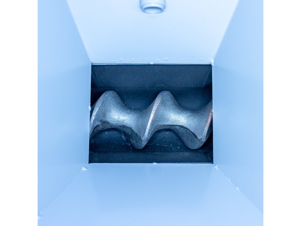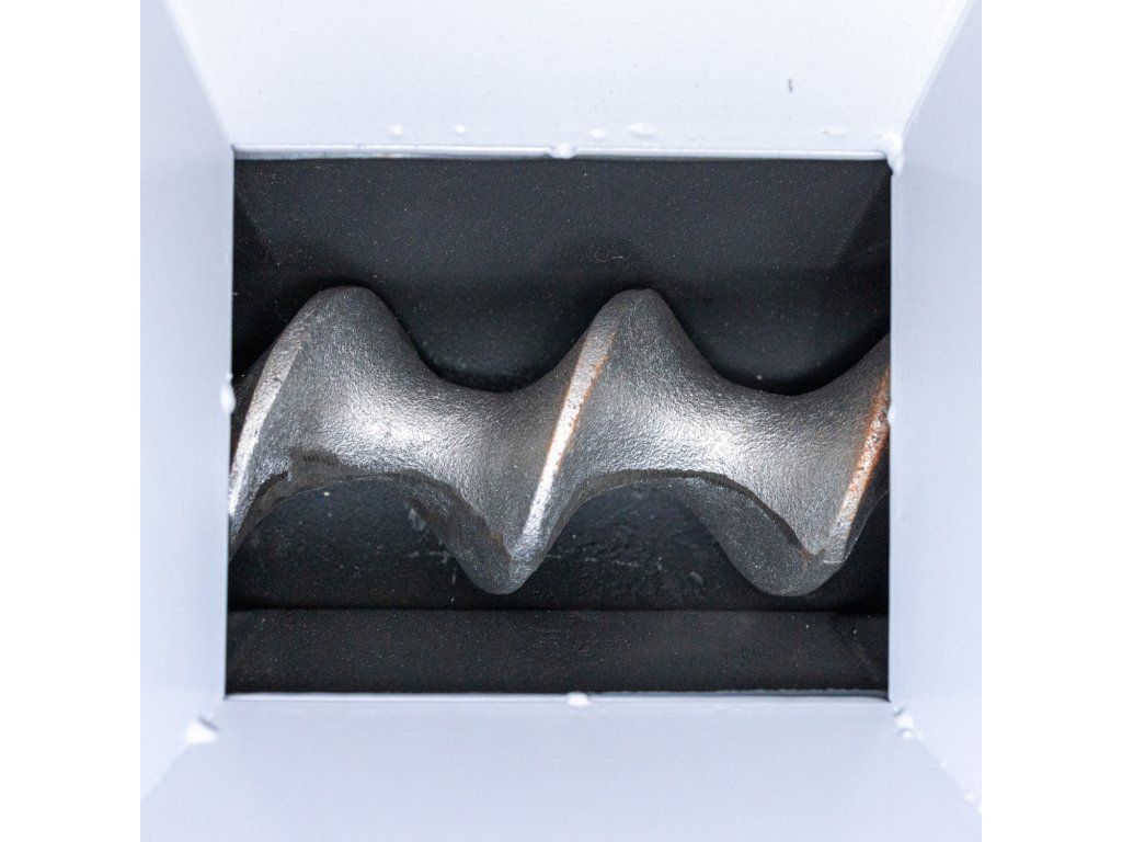 Podavač se skládá z motoreduktoru o výkonu 120W, který je vybaven závlačkou, litinovou rourou, na které je namontován ventilátor RV12 PK a litinovým šnekem, který přivádí a podává palivo do hořáku. Bezpečnostní závlačka v motoreduktoru se utrhne v případě zablokování šneku, např. z důvodu výskytu různých větších kusů nečistot a jiných materiálů. Ta chrání motoreduktor proti poškození.