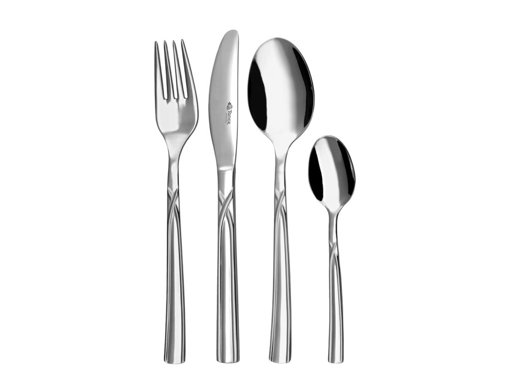 24 dílná sada obsahuje vidličky, nože, lžičky a lžíce.Vyrobeno z kvalitní nerezi 18/10, mechanicky leštěno do vysokého lesku.