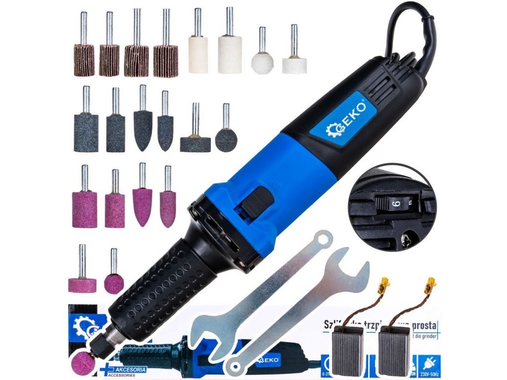 Přímá bruska GEKO G81226 s příkonem 700 W je ideálním nástrojem pro precizní a detailní práce. Je vhodná pro broušení, řezání, leštění nebo frézování. Bruska je dodávána s bohatým příslušenstvím, které umožňuje širokou škálu využití pro různé materiály a aplikace. Skvělá volba pro kutily i profesionály.
