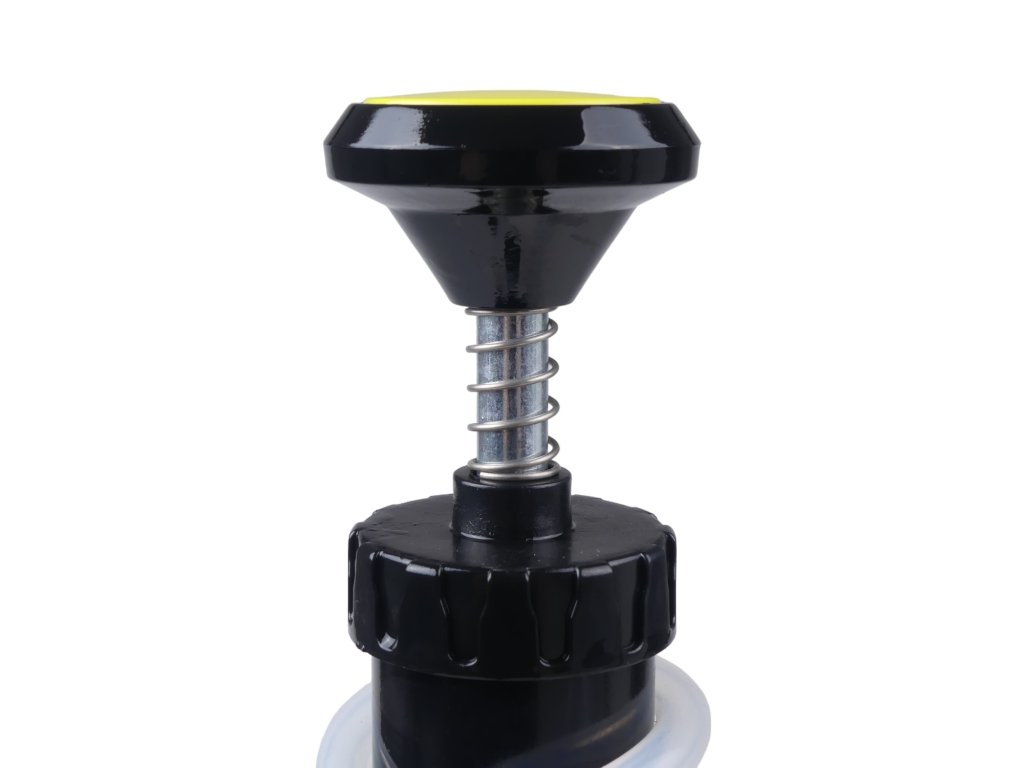 Zásobník s objemem 2,5 litru, dokáže naplnit brzdový či spojkový systém na jednu náplň bez nutnosti dolévání kapaliny. Přístroj je vybaven manometrem s barevně vyznačenými poli.