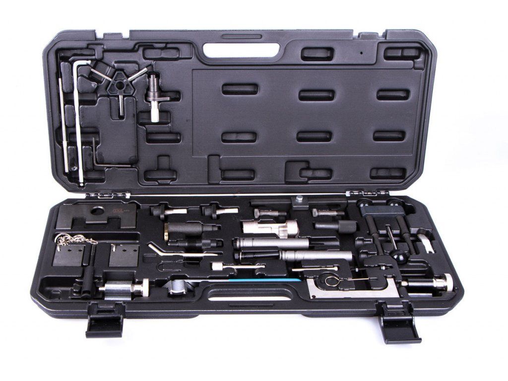 Tato sada přípravků je zapotřebí při zajištění pohyblivých součástí motoru pro výměnu rozvodového řemene, výměnu vodní pumpy atp. u stávajících modelů vozidel s benzínovými motory: