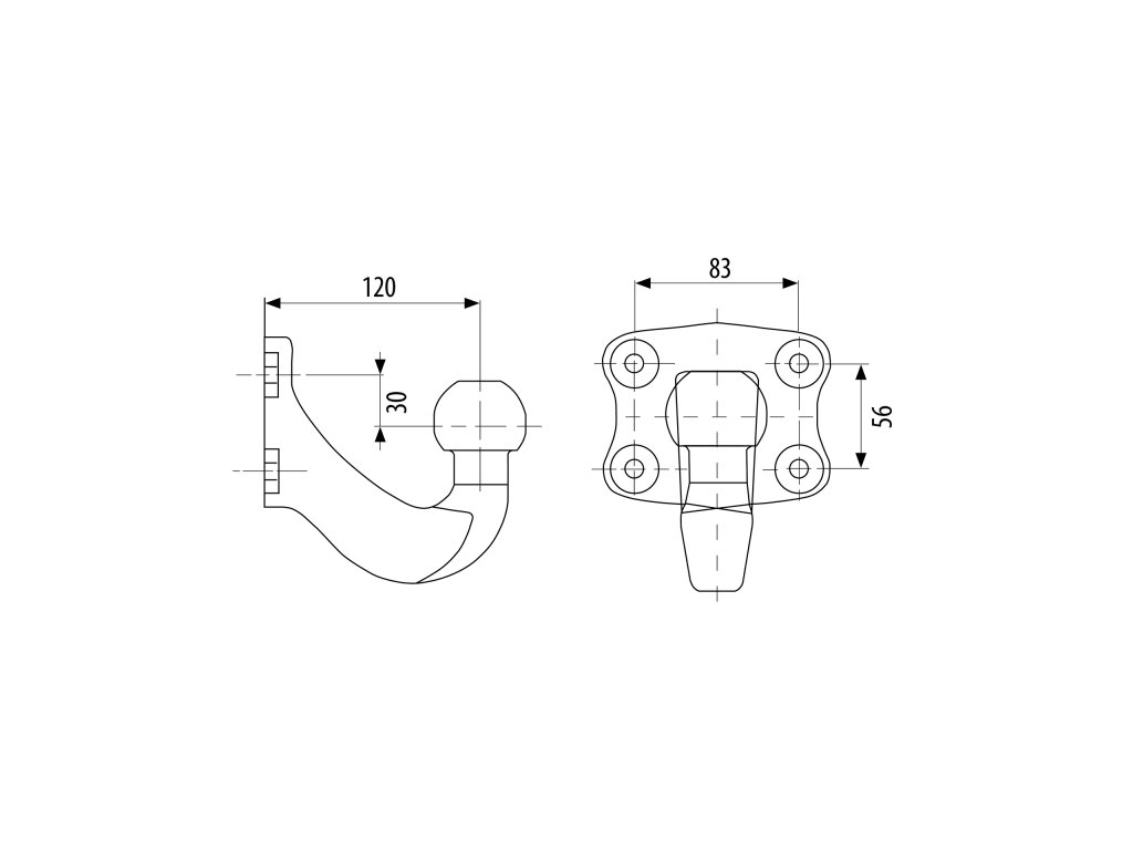 Rozteč otvorů: 83x56mm Průměr otvorů 12,5mm. Snížený o 30mm (ze středu horního otvoru na střed čepu).Bez pevnostních šroubů.
