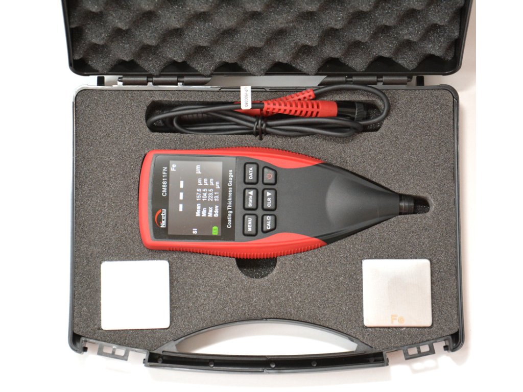 Profesionální, přesný, inteligentní přístroj na měření tloušťky laku na principu vířivého proudu, resp. tloušťky všech nemagnetických vrstev (laku, tmelu, zinku na oceli, plastu, smaltu, keramiky, gumy atd.) na všech magnetických kovových materiálech (železo, ocel, nikl, chrom atd.) a všech nemagnetických (neželezných) kovech (hliník, měd, mosaz, zinek, nemagnetické oceli atd.)