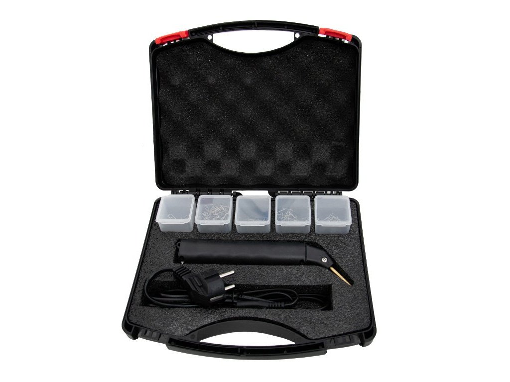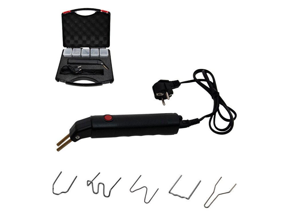 Součástí sady jsou různé tvary sponek, které se snadno zatavují do opravovaného plastového dílu.