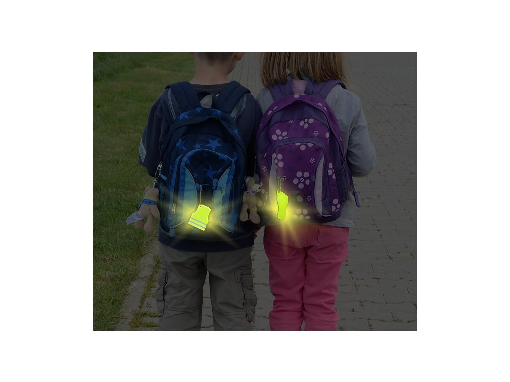 Na velkou vzdálenost dobře viditelný doplněk, vhodné i pro děti. Zejména za snížené viditelnosti či v šeru několikanásobně prodlužuje vzdálenost, na kterou řidič zpozoruje chodce.