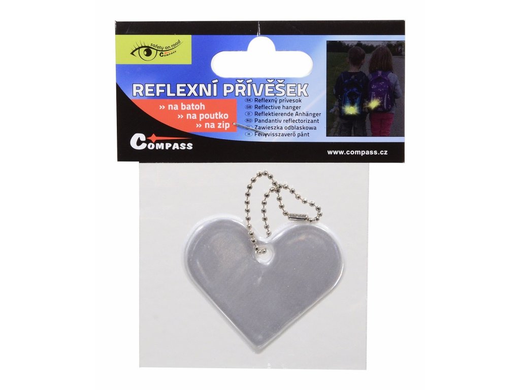 Reflexní přívěšek se závěsem, vhodné k upevnění na oděv, na školní brašnu, na batoh, na kapsu, na zip apod.