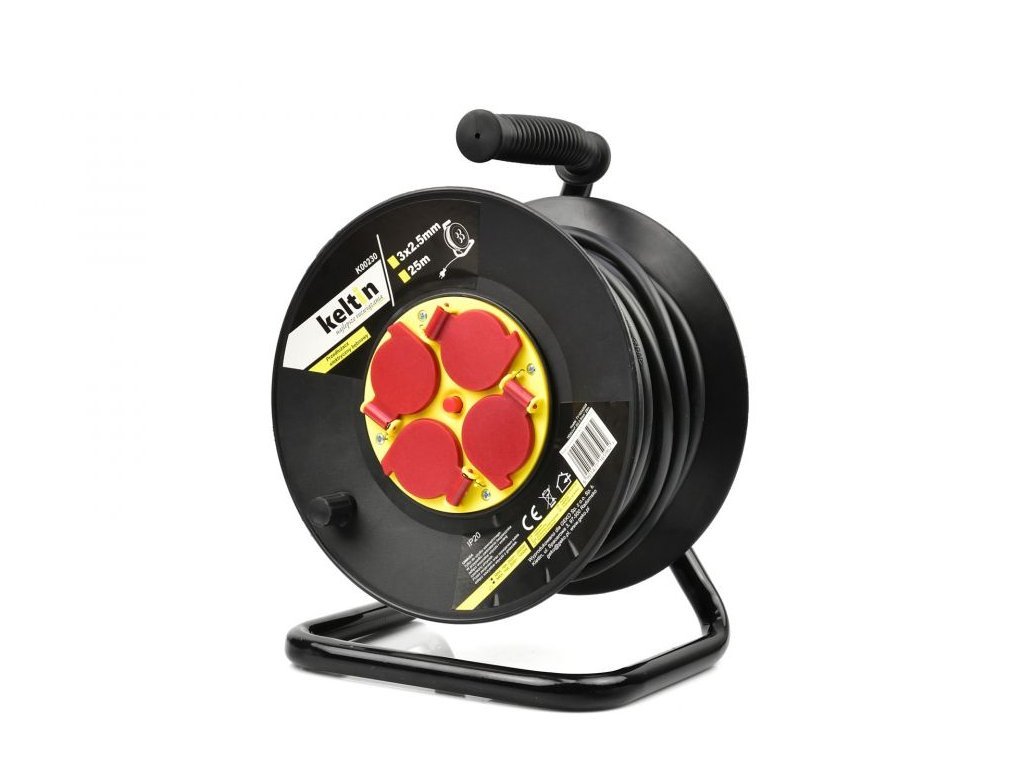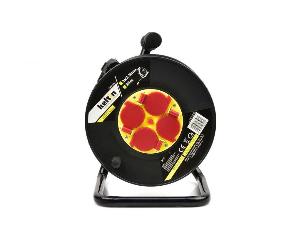 Prodlužovací kabel na bubnu 4 zásuvky 25m 3x2,5mm, plastový KELTIN