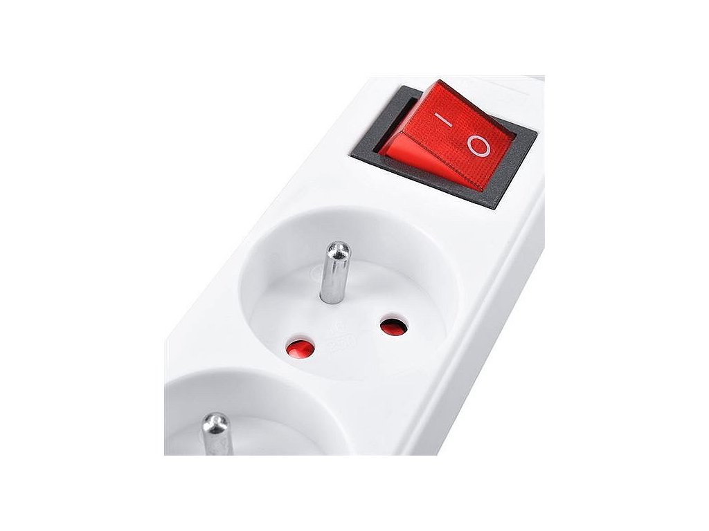 Prodlužovací kabel o délce 1,5 metru se třemi zásuvkami a vypínačem.