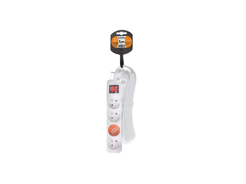 Prodlužovací kabel o délce 5 metru se 4 zásuvkami a vypínačem vhodný pro vnitřní prostory.