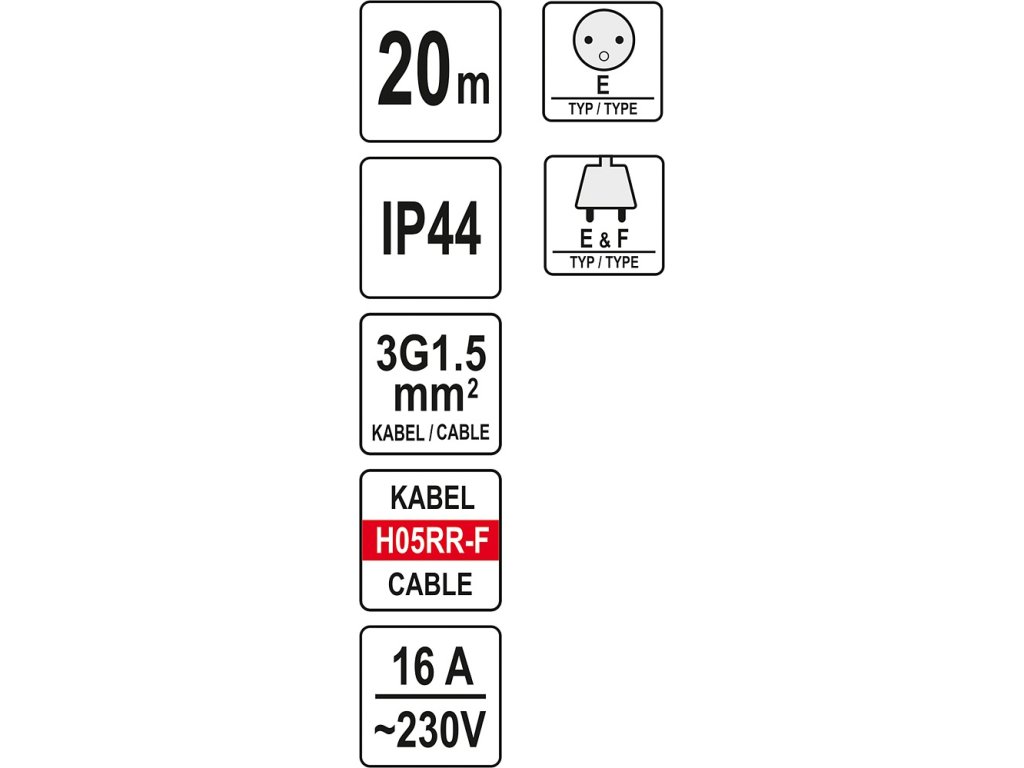 | kabel | H05RR-F (3 x 1,5 mm2) |
