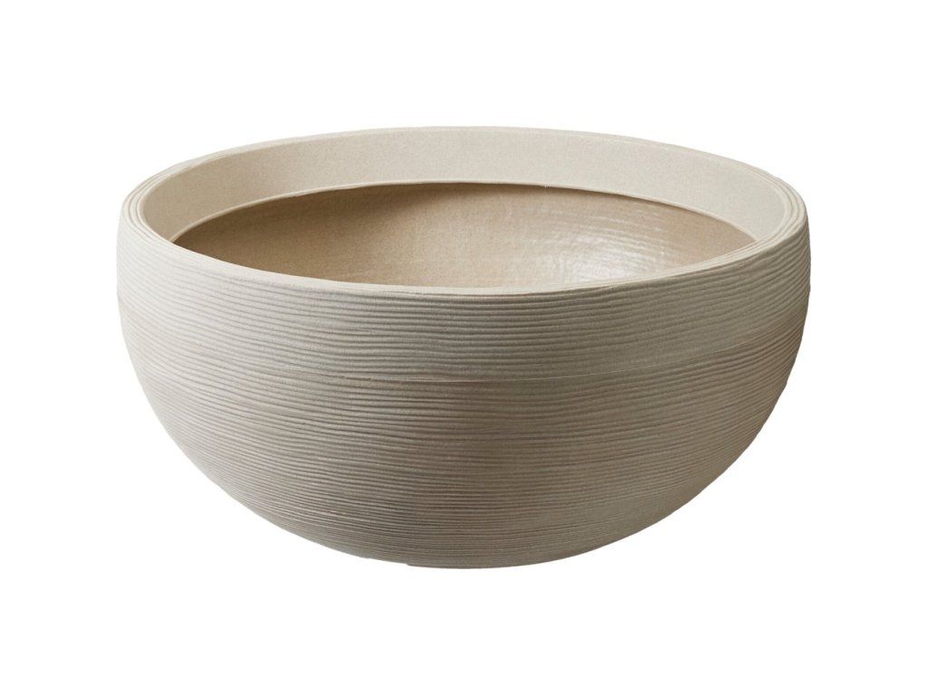 Moderní květináč s jemně žebrovaným vzorem, který dodá prostoru styl a eleganci. Díky průměru 60 cm a výšce 27 cm poskytuje rostlinám dostatek prostoru pro kořenový systém a zároveň zajišťuje stabilitu a dekorativní vzhled.