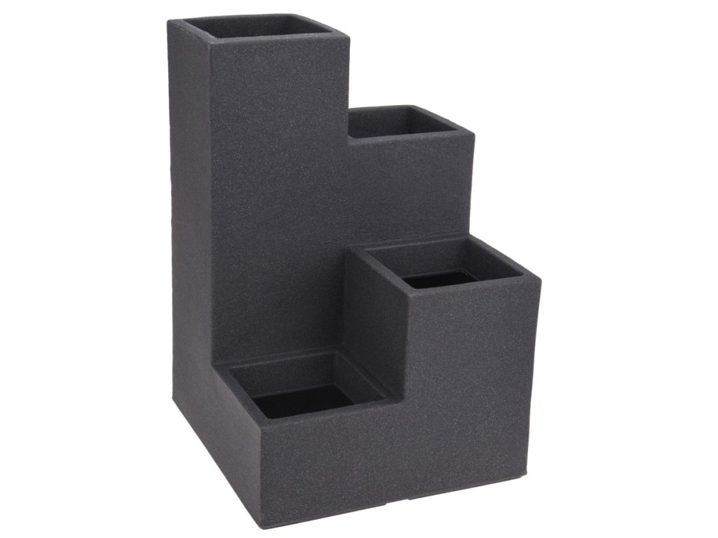 Okrasný květináč ve tvaru schodiště s celkem 4 otvory - lehký Materiál tohoto produktu je zároveň velmi odolný vůči nepříznivému počasí a slunečnímu záření - vhodný pro použití venku, na zahradě, terase či balkóně, ale i uvnitř v interiéru - odolný vůči mrazu i vysokým teplotám, lze používat celoročně venku - skvěle bude vypadat osázen okrasnými rostlinami, květinami, bylinkami nebo sukulenty - ihned zaujme moderním zajímavým designem kamene - rozměry: 40 x 40 cm - výška: 60 cm - barva: šedá (2205)