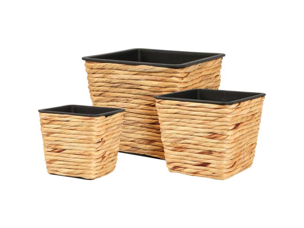 Sada čtvercových květináčů - 3 ksMateriál: vodní hyacint, plastRozměry:12,8x12,8x12 cm 16x16x14 cm 20x20x17 cmBarva: přírodní hnědáDoplňkové parametry