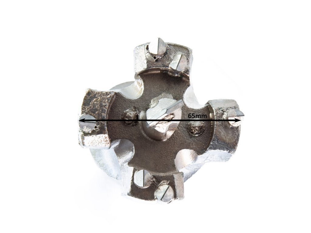 Odolný karbid wolframu s nejjemnějšími zrny Dlouhá životnost a pevnost. Vakuově pájené a kalené pro zvýšenou životnost. Zaručuje rychlé proražení vrtání a dobrý úběr materiálu Pro průrazové vrtání. Vrtací korunky s příklepem SDS-max. Pro průrazové vrtání o průměrech od 45 do 65 mm do betonu, zdiva, silikátových cihel, např. pro spojování vnějších kabelů nebo trubek Jednodílné nástroje se zvonovitou hlavou, asymetricky umístěnými tvrdokovovými kolíky a tvrdokovovým středovým hrotem.