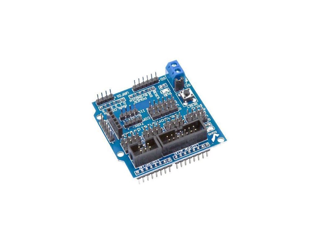Senzor shield umožňuje připojení různých modulů, jako jsou senzory, serva, relé, tlačítka, potenciometry. UNO Sensor Shield V4.0 obsahuje všechny Arduino analogové a digitální piny. Podporuje všechnydruhy rozhraní a je plně compatibilní s Arduino Mega a Arduino UNO. <BR/><BR/>**Specifikace:**<BR/>Analogové porty: 6 vstupů s VCC/GND.<BR/>Digitální porty: 13 portů pro digitální moduly čiserva<BR/>Komunikačni port: I2C a UART<BR/>Každý konektor 3 piny VCC, GND, OUTPUT<BR/>Tlačítko reset<BR/>PWR LED<BR/>Velikost: 70x58mmDokumentace: https://www.hadex.cz/spec/m377c.pdf
