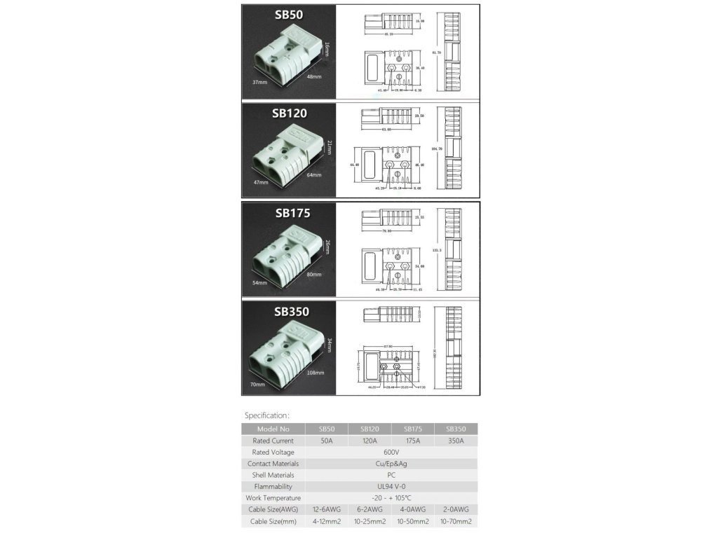Proudová spona - silový konektor SY50A-600V červená Proudová spona se skvěle hodí pro demontovatelné uložení navijáku, měniče napětí a jiných spotřebičů.**Specifikace:**