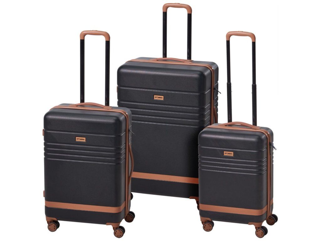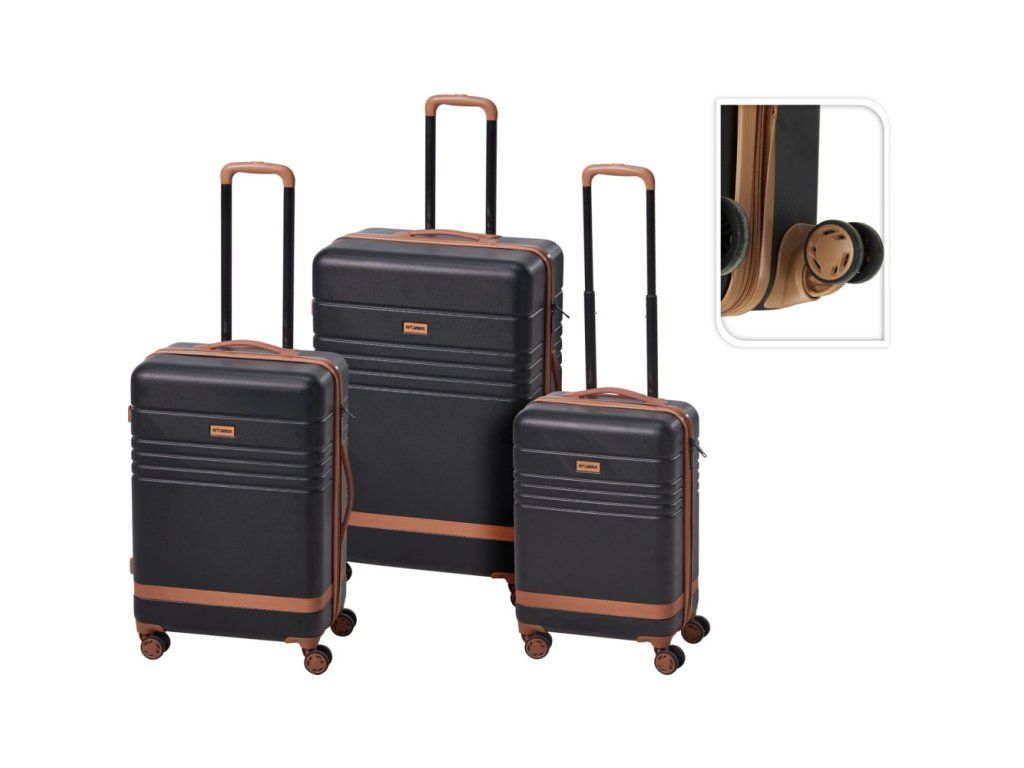 - Stylový design s hnědými detaily - Kombinace černé barvy s hnědými prvky dodává kufrům moderní a sofistikovaný vzhled.