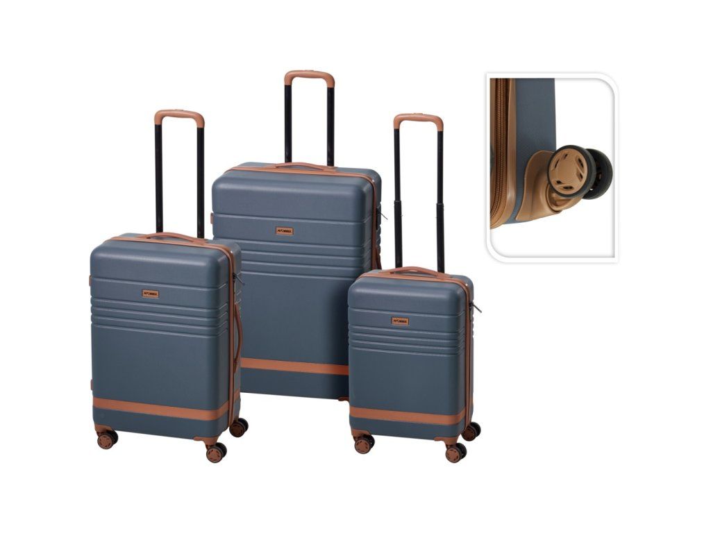 - Stylový design s hnědými detaily - Kombinace šedé barvy s hnědými prvky dodává kufrům moderní a sofistikovaný vzhled.