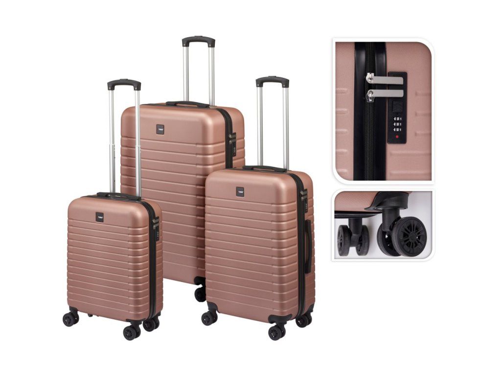 PROWORLD Sada cestovních kufrů 3 ks metalicky růžová KO-DG4700200