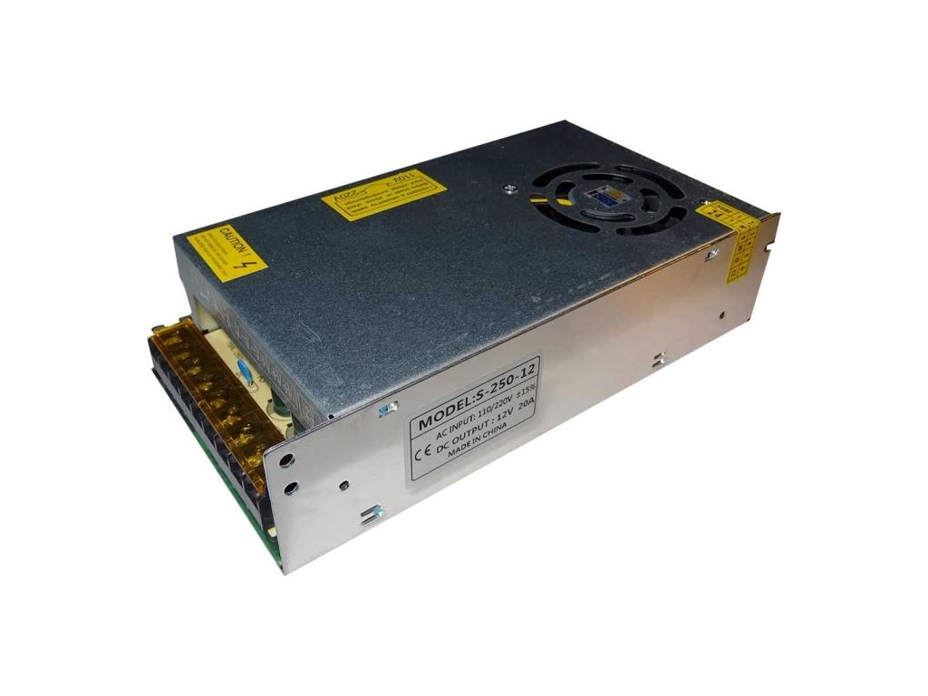 Průmyslový zdroj 12V=/250W spínaný S-250-12 **Specifikace:**Vstupní napětí: 110 nebo 230V (volba přepínačem)