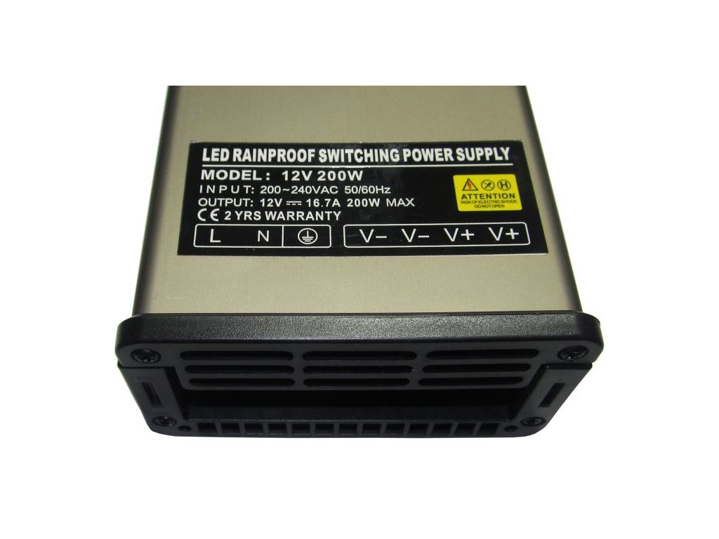 Průmyslový zdroj 200W 12V, krytí IP40 **Specifikace**Vstupní napětí: 200-240VAC 50/60Hz