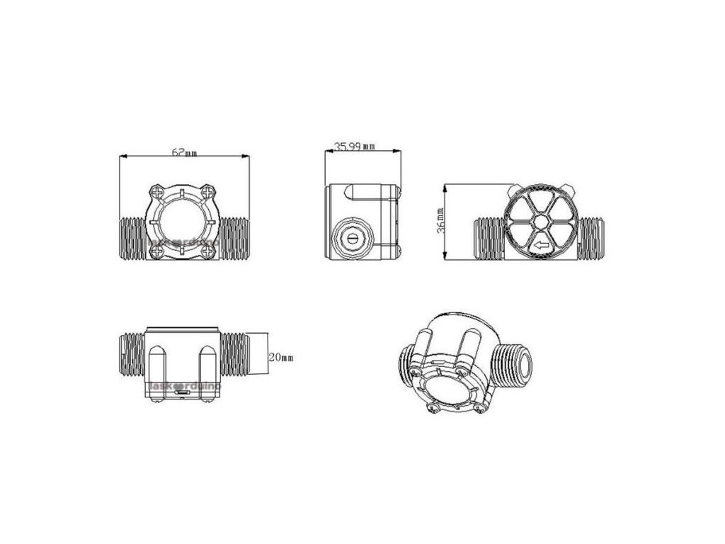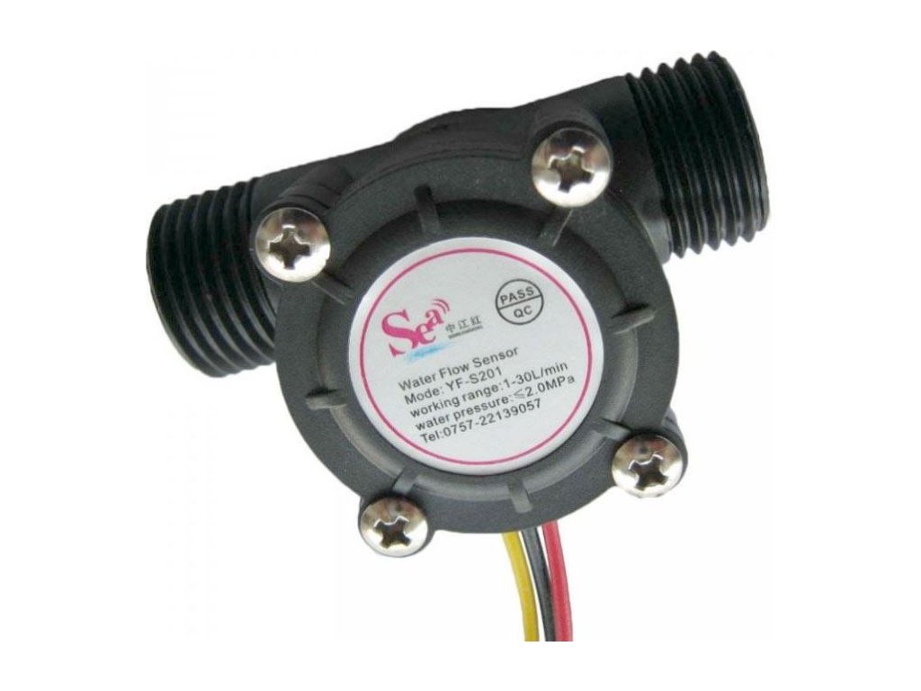 Průtokoměr YF-S201 1/2” 1-30l/min pro Arduino Průtokoměr vody 1-30L/min umožní měřit množství protékající kapaliny za pomoci Hallovy sondy. Na výstupu se v závislosti na průtoku mění frekvence, čím vyšší průtok, tím je vyšší frekvence. Možno využívat do maximální teploty kapaliny 80°C.**Specifikace:**