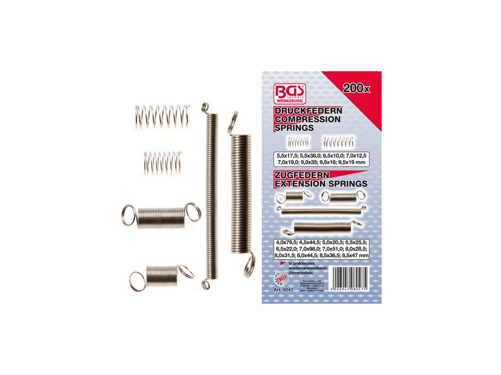 Pružinky různých velikostí, tažné a tlačné, sada 200 ks - BGS 8047