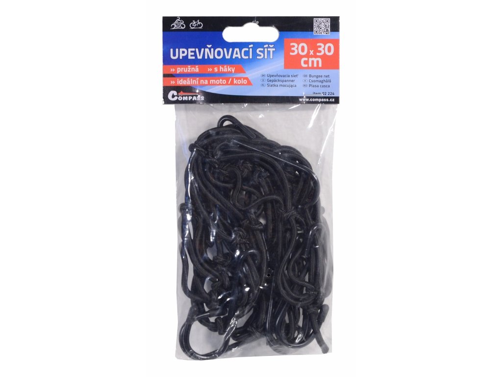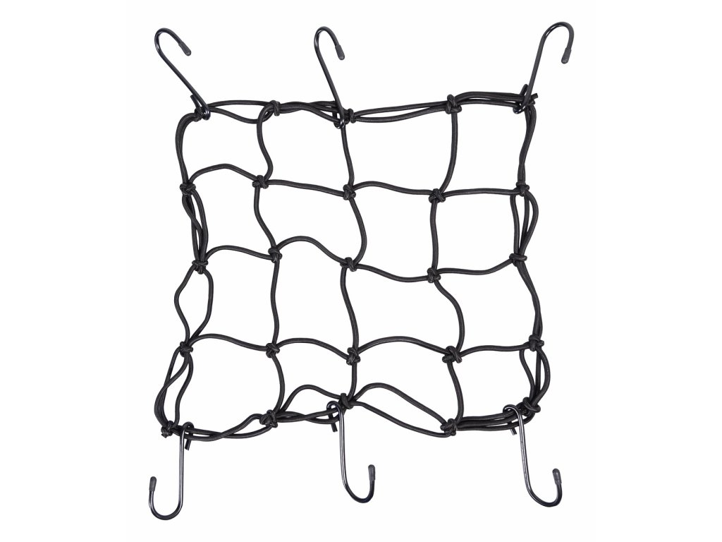 Pružná upevňovací síť velikosti 30 x 30 cm, která je pro snadné upnutí vybavena háčky.