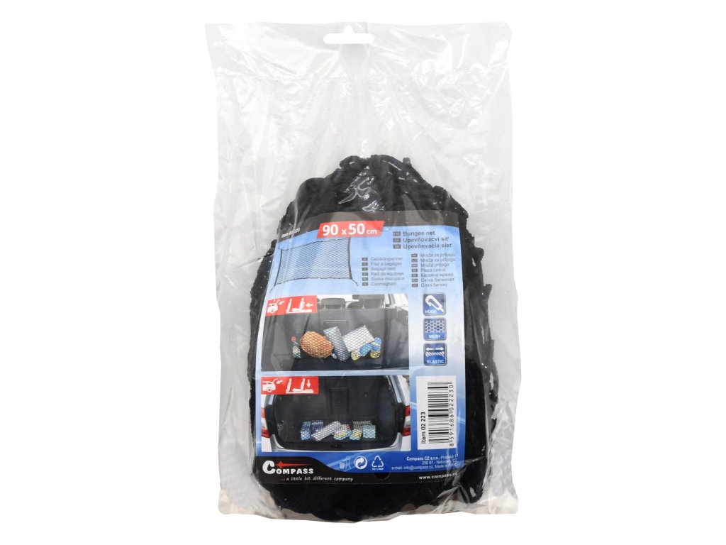 Pružná upevňovací síť do interieru vozu, velikost 50 x 90 cm, vhodná pro snadné zajištění zavazadel, nákupu, apod.