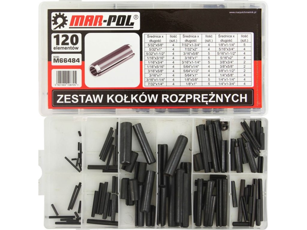 Pružný kolík, sada 120ks MAR-POL