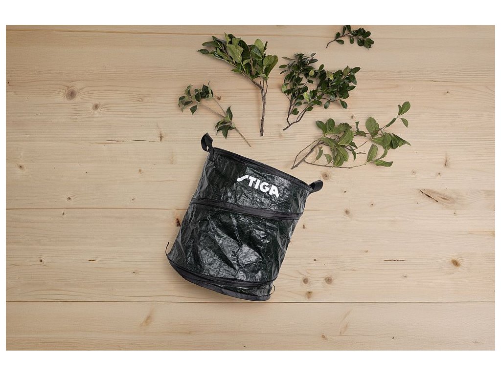 Odpadkový koš/pytel Stiga je praktický zahradní doplněk určený pro snadný sběr a přepravu odpadu během zahradničení.