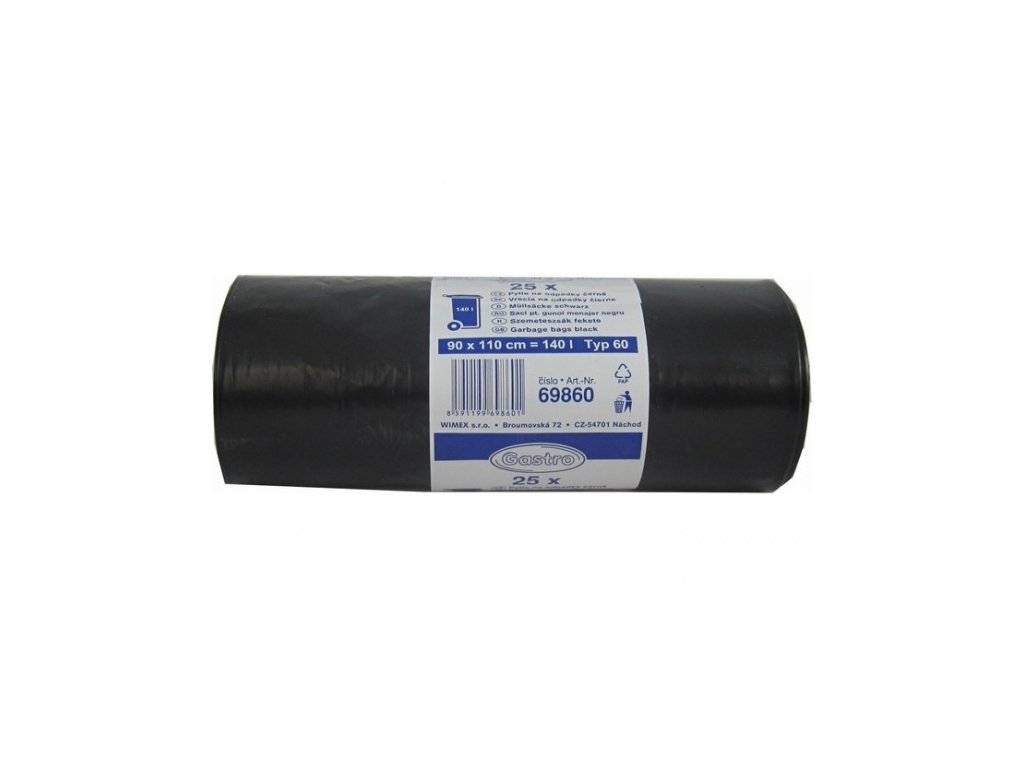 Pytle na odpad 140L/25ks, 90x110cm, 60um, GASTRO černý