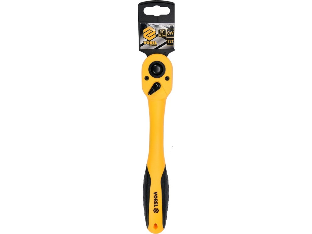 Ráčna je vyrobena z CrV oceli, zaručující její odolnost při intenzivní práci.
