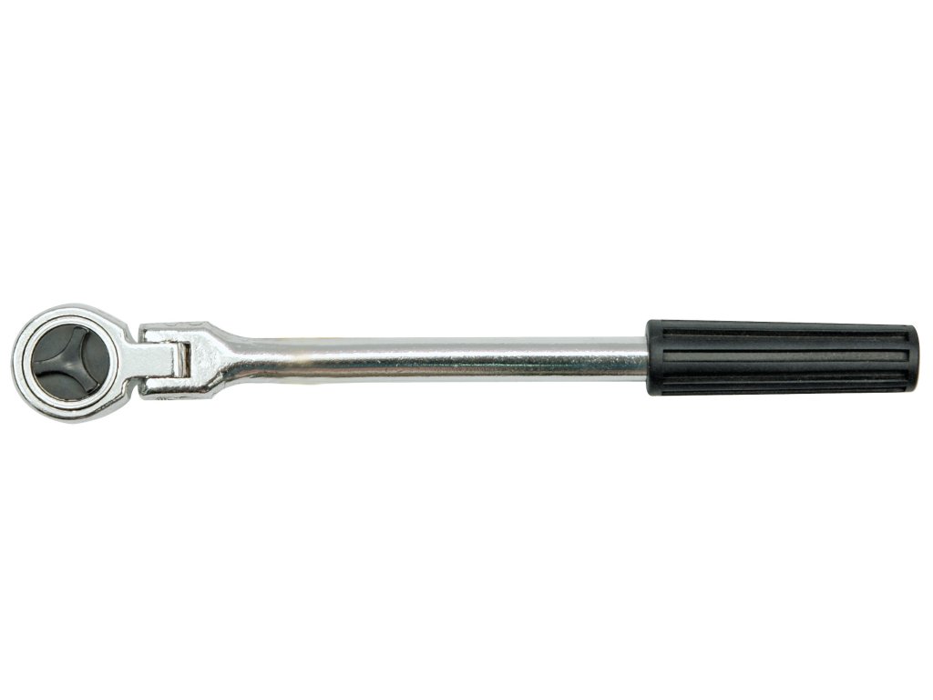Hlava a tělo této ráčny jsou spojeny kloubem, díky kterému je vhodná pro použití na těžko dostupných místech. Povrch je chráněn vrstvou chromu. Rukojeť je z plastu.