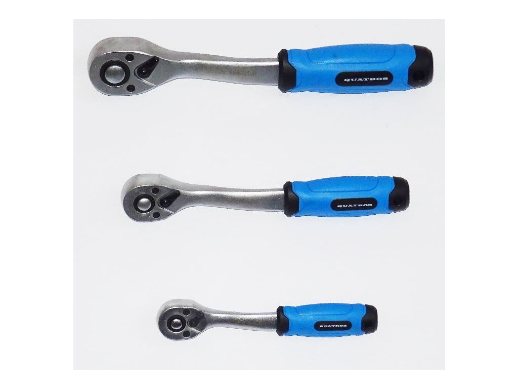 Ráčna se čtyřhranem 1/4“ (6,35 mm) a vyhnutou konstrukcí, délka 150 mm – QUATROS QS50112