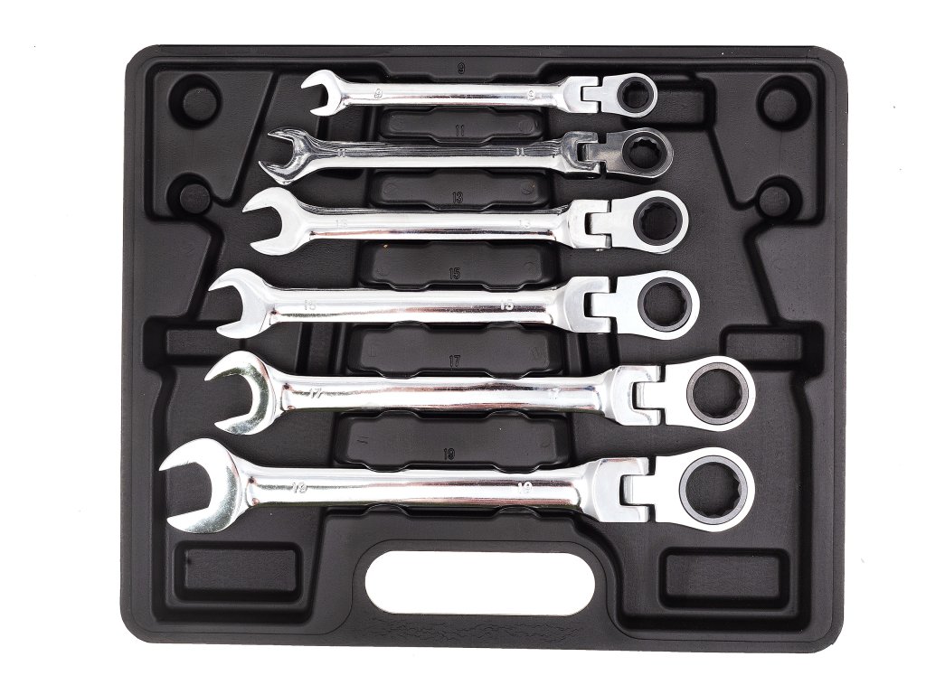 Ráčnové očkoploché klíče, s kloubem, velikosti 8-19 mm, sada 12 ks kufříku - JTY-2007A