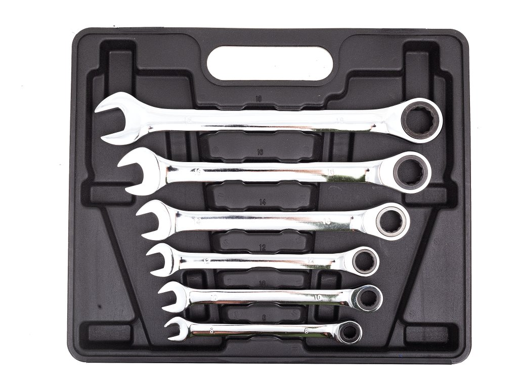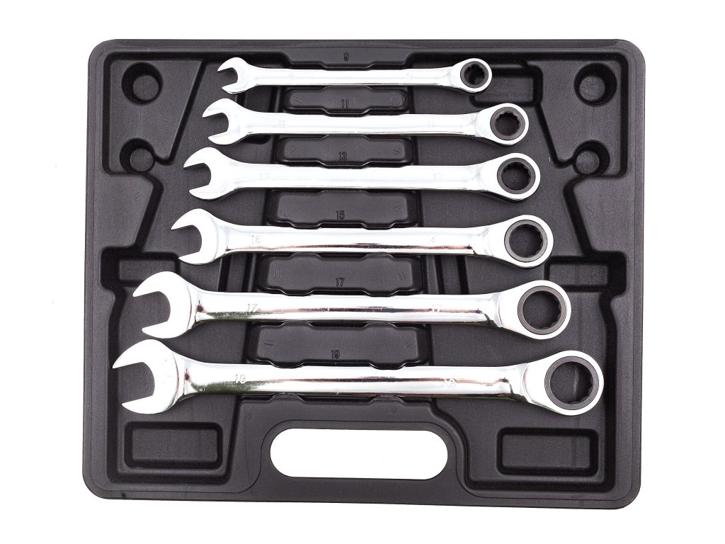Sada obsahuje klíče: 8 mm, 9 mm, 10 mm, 11 mm, 12 mm, 13 mm, 14 mm, 15 mm, 16 mm, 17 mm, 18 mm a 19 mm
